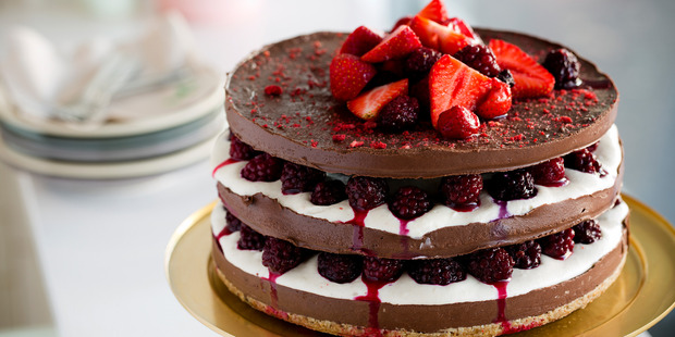 CHOCOLATE, VANILLA BEAN AND BOYSENBERRY GATEAU Serves 14 Equipment • Food processor • High speed…