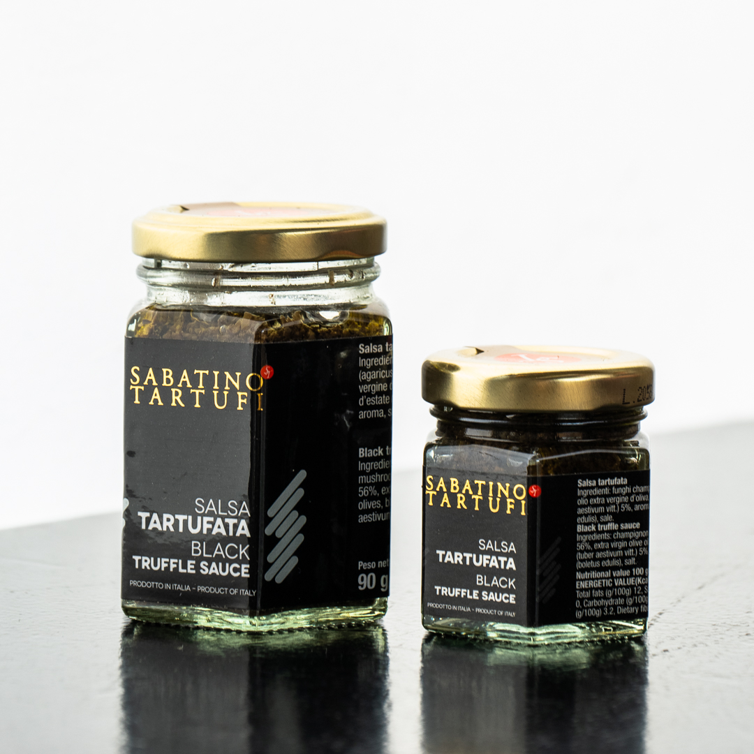 Our Black Truffle Sauce is a fine blend of black summer truffles and champignon mushrooms, together with excellent extra virgin olive oil and the distinct flavor of black olives it creates a flavorful blend for any plate.
